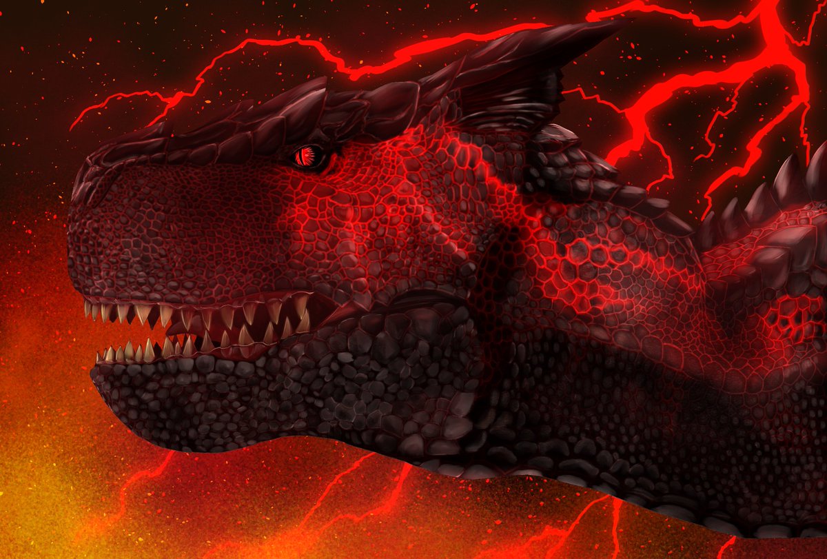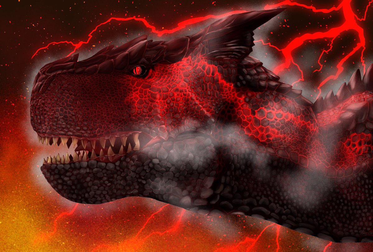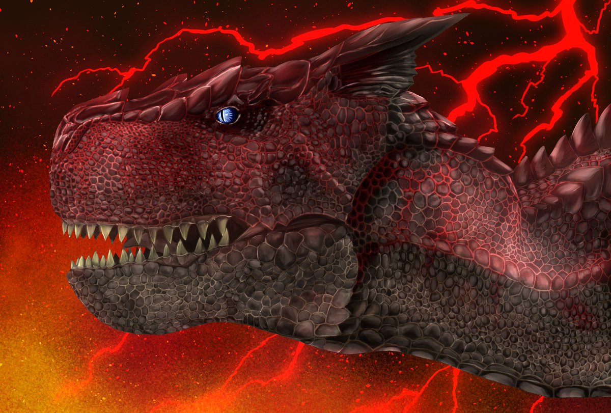 #モンハン #イラスト #絵描きさんと繋がりたい ティガレックス希少種進捗。 顔は大体できたんで後は首周りを後日描こうっ