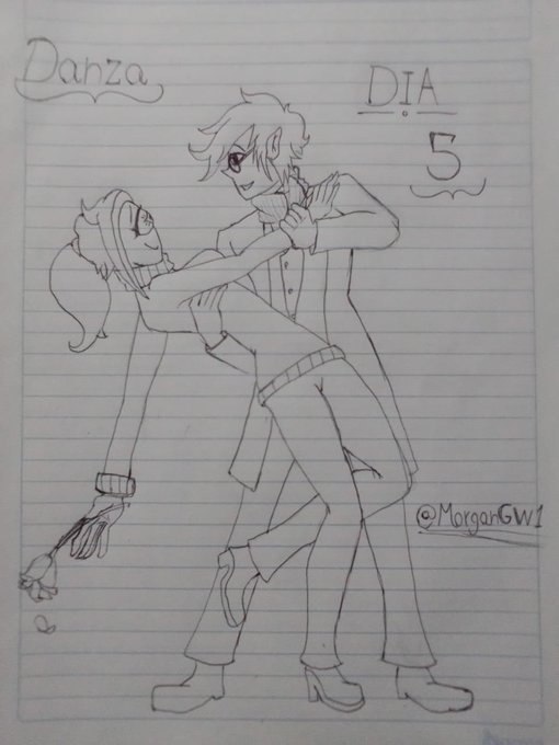 Dia 3: 🎶Danza🎶 "Entre la musica de acordeon y violines el la invito a bailar, ella, je... ella jamas le diria que no" #Drawtober2022 #inktober2022day5 #inktober2022 #myart #originalcharacter #OC #drawings