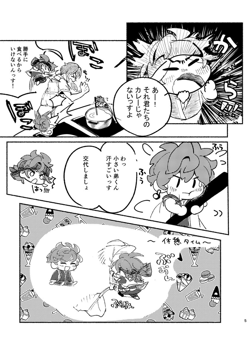 5/4ブリデにて燐一+コロポックルあまぎ A5/本文32P/400円 頒布予定 サンプル(1/2) pixiv pixiv.net/artworks/97949…