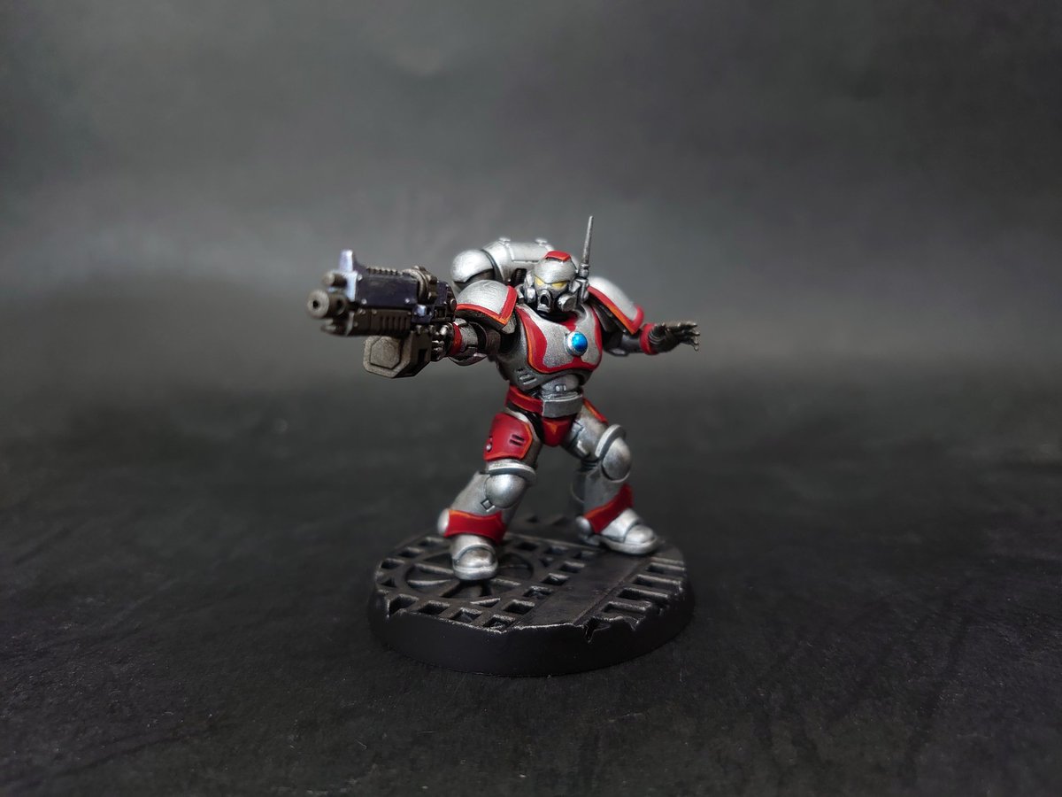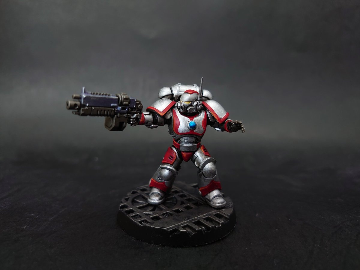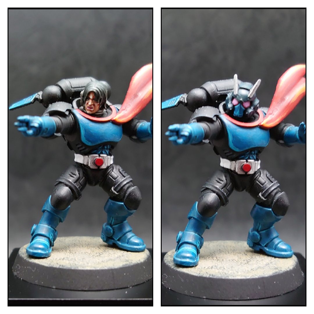 ウルトラマンアーマーを装備したスペース戦隊所属のレフテナント「ウルトラマンマリーン」。右手の銃はスペシウムボルターです。 #ウォーハンマー #Warhammer #warmongers #ウルトラマン