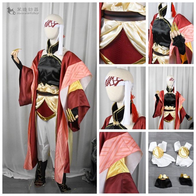 終末的女武神 始皇帝 數位印花皮革鎧甲 護膝白布料上襯,戴在膝蓋上不脫垂 護膝為皮革看起來更高貴 褲子以拼接的方式接近還原 耳環是手工編制的中國結,並非買來的現成品,立體度更高 頭巾選擇有彈性的布料,不易脫落 布料選擇微帶光澤的厚鍛,更顯得皇上感的高貴 #秦始皇 #始皇帝 #終末のワルキューレ