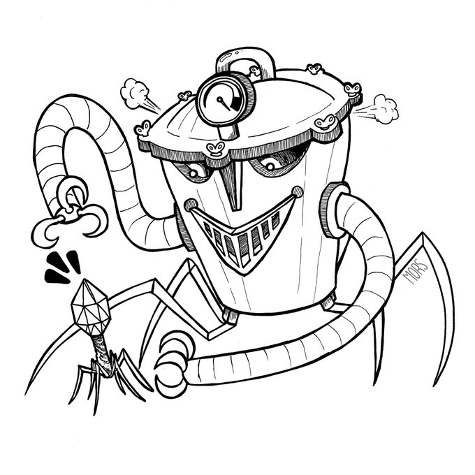 #inktober Day 9: Pressure The Autoclave vs the Bacteriophage . . . #inktober2021 #day9 #art #ink #traditionalart #illustration