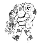 #inktober Day 15: Helmet The Squid is dead . . . #inktober2021 #art #ink #traditionalart #day15 #diver #squid