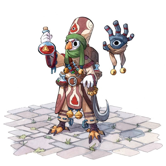 A character I did for the tabletop RPG Tales from Myriad, by @EmberWickArt ! He's a Birdling potion master, specialized in explosive potions. The game looks great! Here's the link to the Kickstarter campaign : kickstarter.com/projects/tales… Any TTRPG players in here?