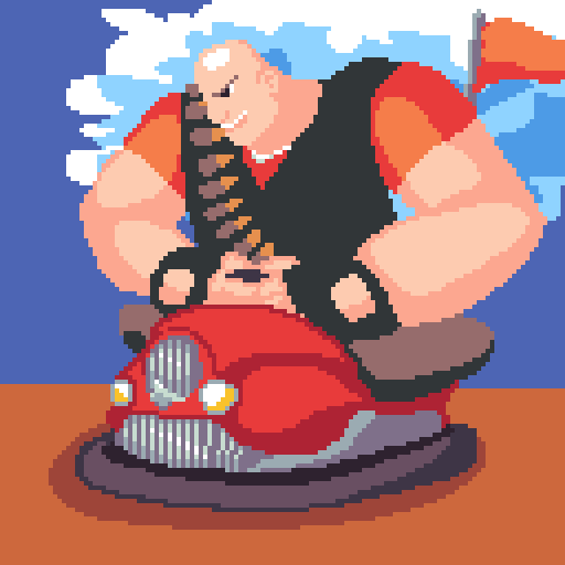 Day 10 of #pixel_dailies! Heavy riding his #BumperCar after dominating that sandvich thief! @Pixel_Dailies #pixelart #ドット絵 #aseprite Link to the palette : lospec.com/palette-list/r…