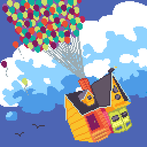 🎈Day 9 of #pixel_dailies!🎈 #LighterThanAir house from the Pixar film Up! Very sweet movie! @Pixel_Dailies #pixelart #ドット絵 #aseprite Link to the color palette : lospec.com/palette-list/r…