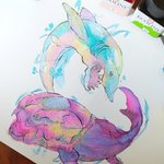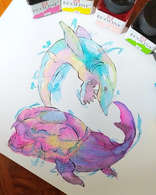 Just a tattoo-like draw i made for a friend some time ago🦈 . . . #art #traditionalart #paleoart #shark #helicoprion #dunkleosteus #tattoo #tattooart #watercolors #colorfull