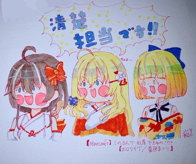 16 35 #祭絵 #はあとart #ねねのアルバム 最初の挨拶。 3人とも緑目で赤色が似合うので並べるとすごく可愛いんですよ❤️🔥🍑🥟🏮 22/08/19 03:06