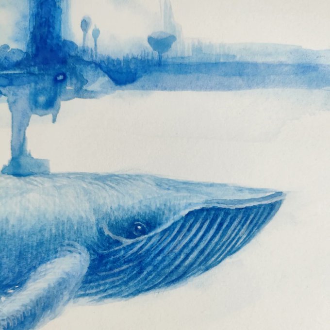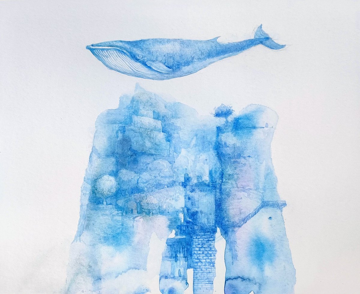 春が近づいて来ましたね。嬉しいですが目が痒いです。今日も朝ハッチング。#art #watercolor #透明水彩 #クジラ #イラスト #illustration #青 #blue twitter.com/i/web/status/1…