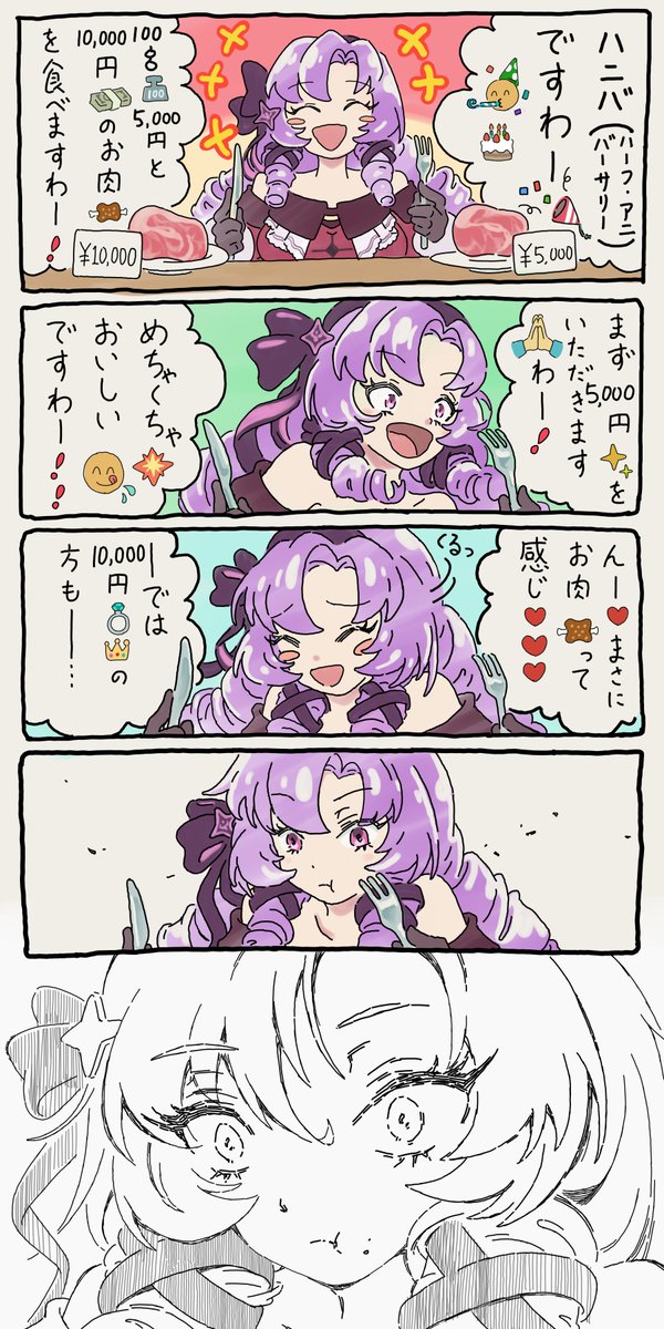 ハーフアニバーサリー🎉✨✨放送📺にて、100g10,000円のお肉🍖の"格"の違いに言葉を失うサロメ嬢🎀🎀🎀 #サロメ百万展