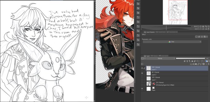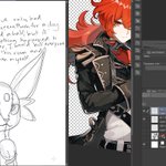 somedays I have too much fun with doodling. Made Diluc from #GenshinImpact into a meme. I will probably doodle more plushie in the background later. lolol #genshinimpactfanart #wip #espeon #Diluc #espeonplushie