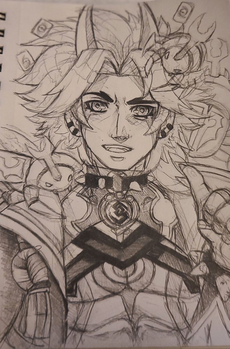 And all done. I kind of want to turn it onto an enamel pin later. Def going to try to get it signed tomorrow. #aratakiitto #ittoarataki #GenshinImpact #JenshinImpact #genshinimpactfanart