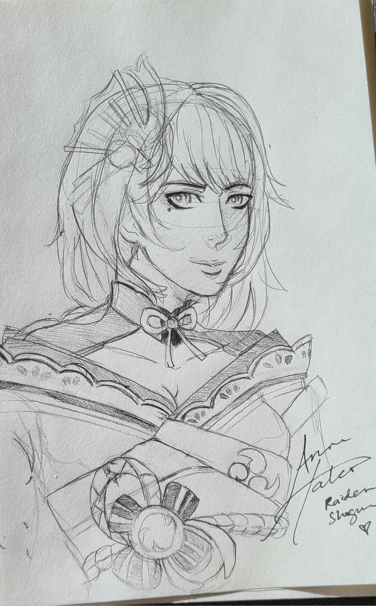 On Amtrak on my last stretch to get home and finishing my sketch of Raiden Shogun. Its about 60% done. Thank you at @annejyatco for signing it. :) #RaidenShogun #genshinimpactfanart #wip #itsadoodle #genshinimpactart #genshinimpact