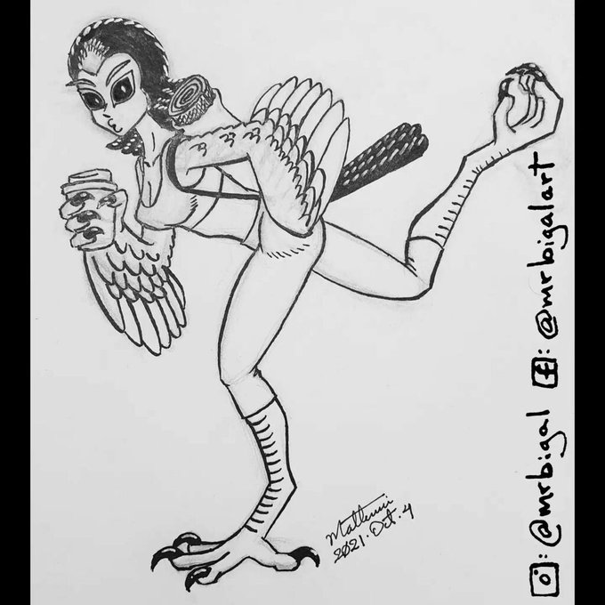 3. Harpy. On her way to yoga or something --- 3. Harpía. De camino a yoga or algo así. === #harpy #inktober #inktober2021 #drawtober2021 #drawtober #fantasy #mythology #bestiarytober2021 #berry2021 #ink #brushpen #inking #dailysketch #sketch #art #an… instagr.am/p/CUoiZCMsarv/