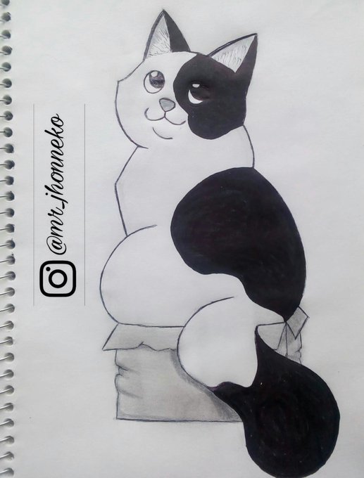 3er día de #Inktober esta vez la palabra fue "Bulky-voluminoso" así q pensé en un gato gordo XD #inktober2020 #drawing #draw #dibujotradicional #drawblackandwhite #cat #catdrawing #gato