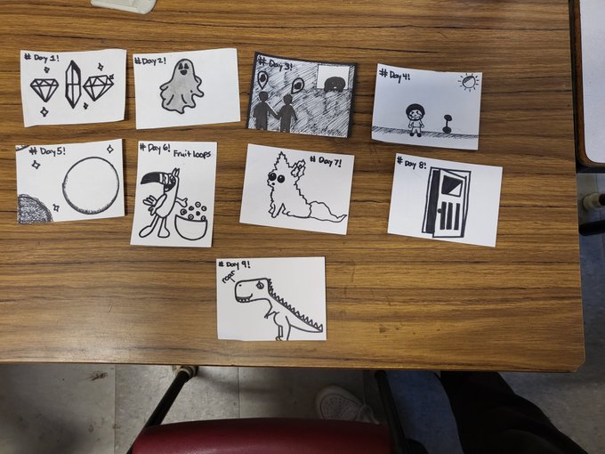 1 7 Students #Inktober for the first two days, great morning activity, students get one word for the day and draw and ink their art @centralspry 21/11/05 07:52