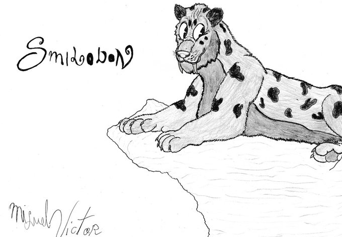 Para segunda homenagem do Dia do Paleontólogo trago a vcs um pedido de um Paleoartista e YouTuber que admiro muito @_themingau Do canal The Mingau Tentei mesclar um pouco de realista e fantasioso nessa arte #rubberhose #smilodon #paleoart #paleontology #drawings twitter.com/_themingau/s…