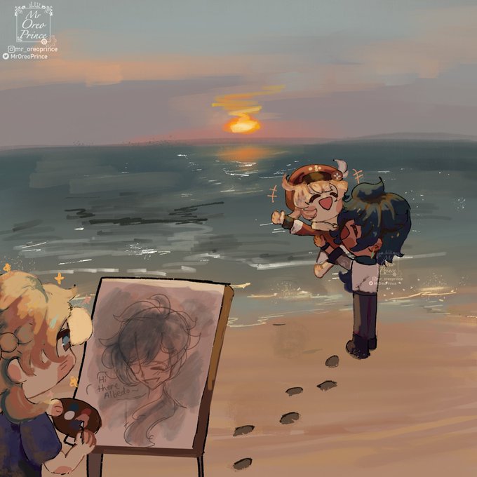 Summer with Kaebedo family #art #GenshinImpact #genshinimpactfanart #kaebedo #kaeya #albedo #albedoandkaeya #klee #原神