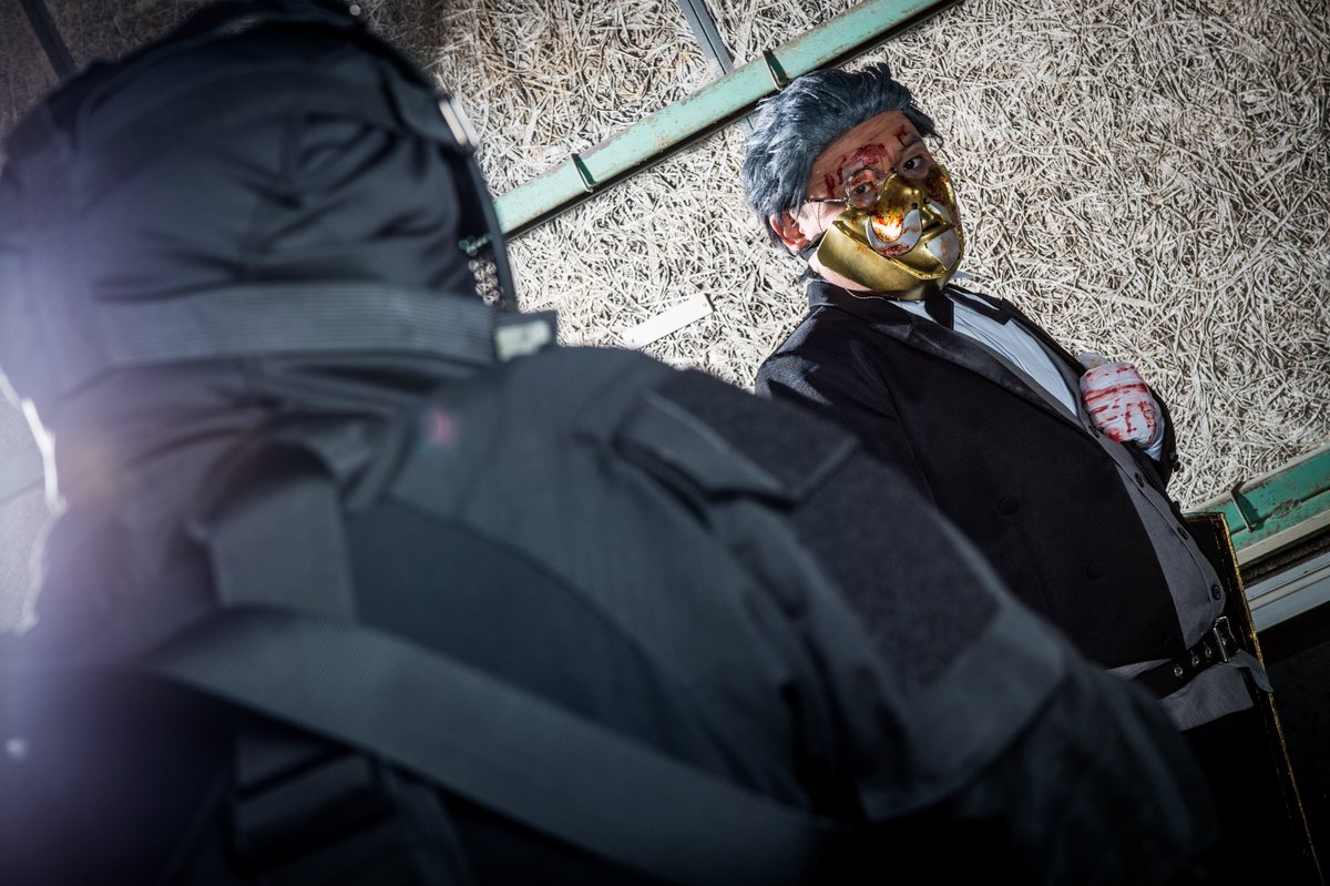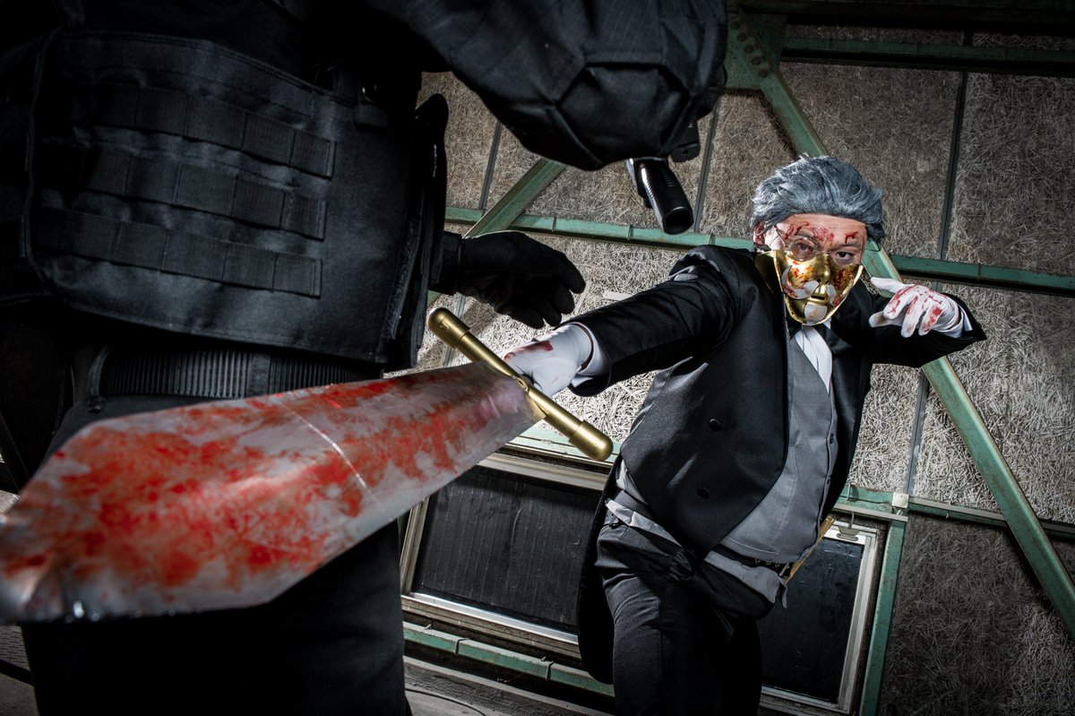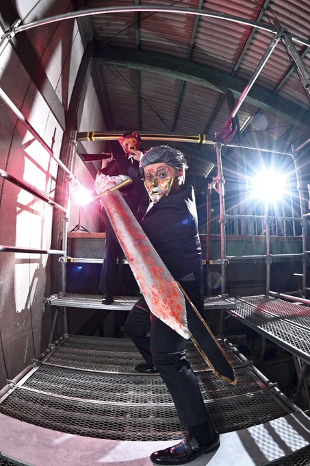 【コス】※血糊注意 創作 執事長 「私が先陣を切りましょう。援護をお願いします」 「りょーかいでーす」 執事長:ミスターR 新人執事: @Fuyuki0480 撮影: @tmy9029 #戦闘使用人併せ1023