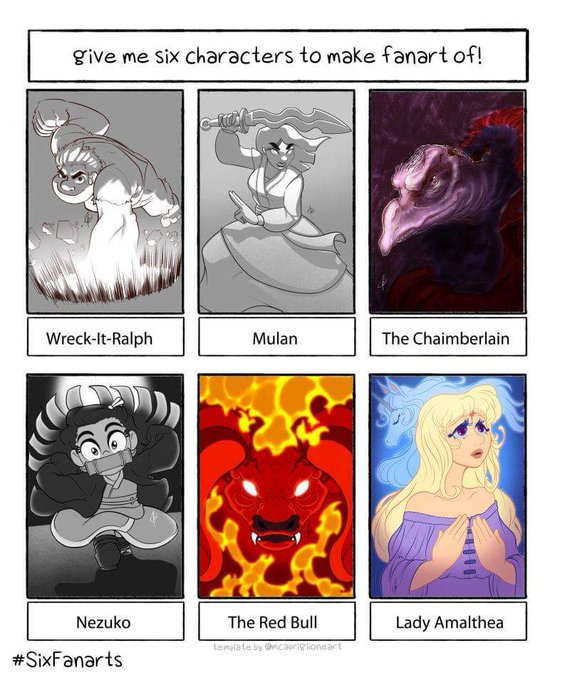 Finally done with this #sixfanarts thing! Patrons will be getting individual, high res versions of the images (might color the greyscale ones later 🤔 ) I appreciate all of the suggestions and shares, y'all really do make my day! Might try that OC outfit one next...