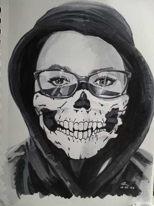 INKTOBER 2022, Day 25. Spooky wife, spooky life. 🖤 #inktober #drawing #halloween #penandink #markerart #blackandwhiteart #thatsmygirl #love #portraitart #illustration #prismacolorpremier