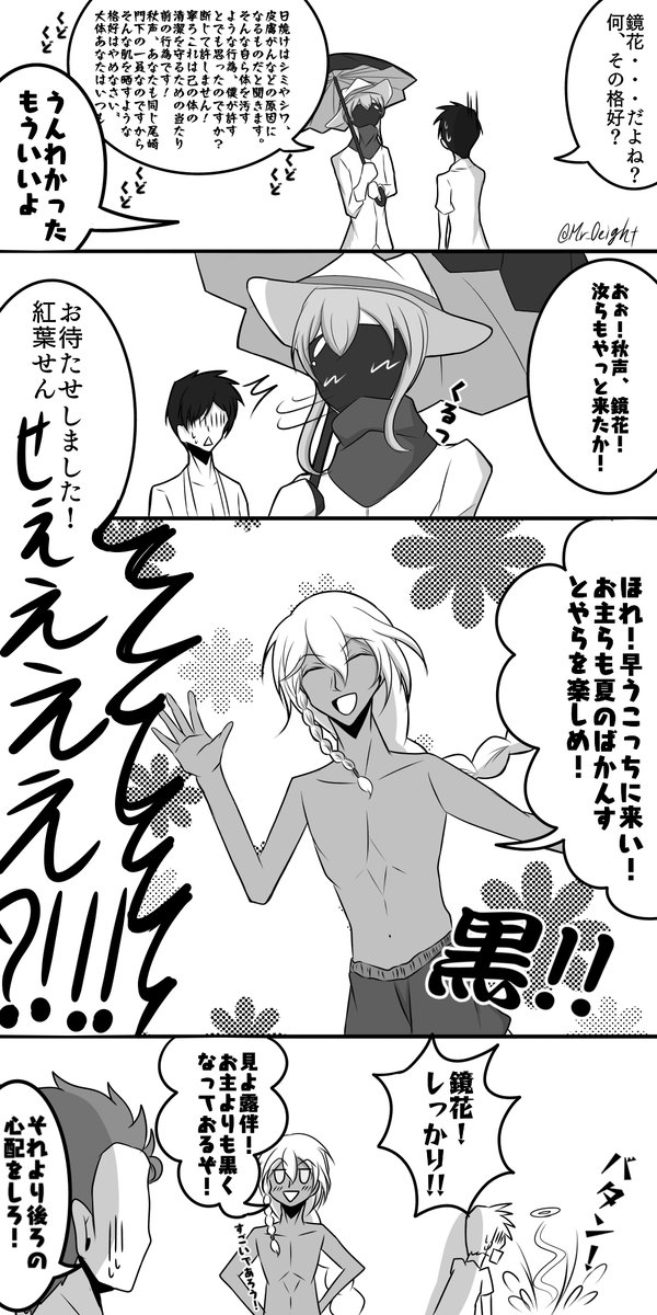 【ブンゴーたちのバカンス】 日焼け < 海を満喫したい 人もいる ※2枚目はオマケ落書きイラストです