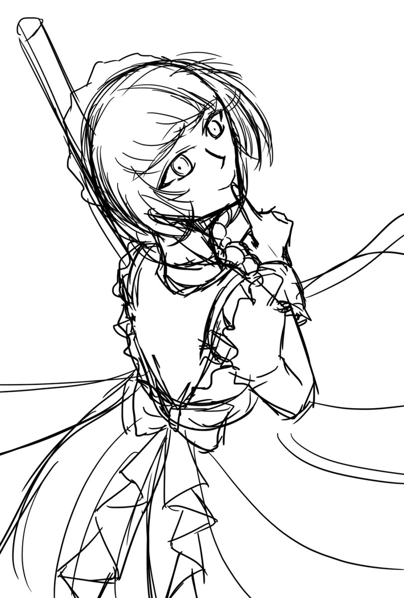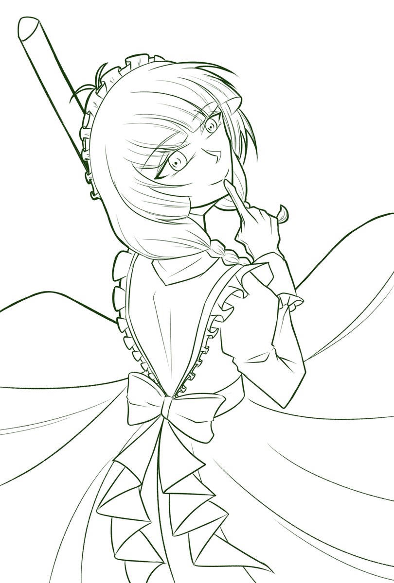 3 24 #このタグを見た人はラフ画とその完成絵を見せる 以前描いたメイド服トーコクセンセで。 1枚目が土台 2枚目が下書き 3枚目が線画 4枚目が完成 22/08/08 23:44