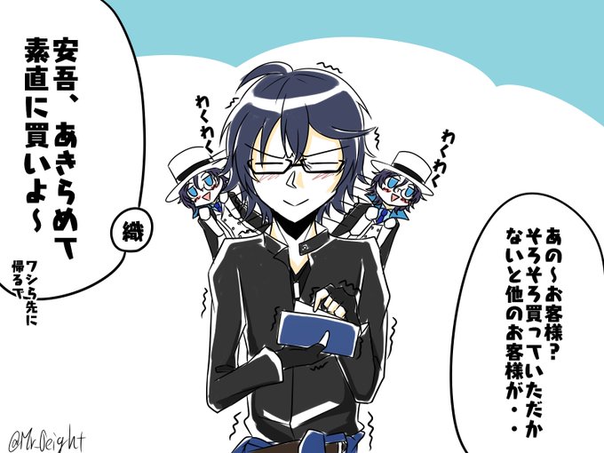 11 50 ※文ゲキネタバレなし ※落書きイラスト(妄想) 推しのグッズを買いに来たけど、推しが見ていると何故か買いづらくなるangセンセ( ´∀` ) 22/09/06 21:49