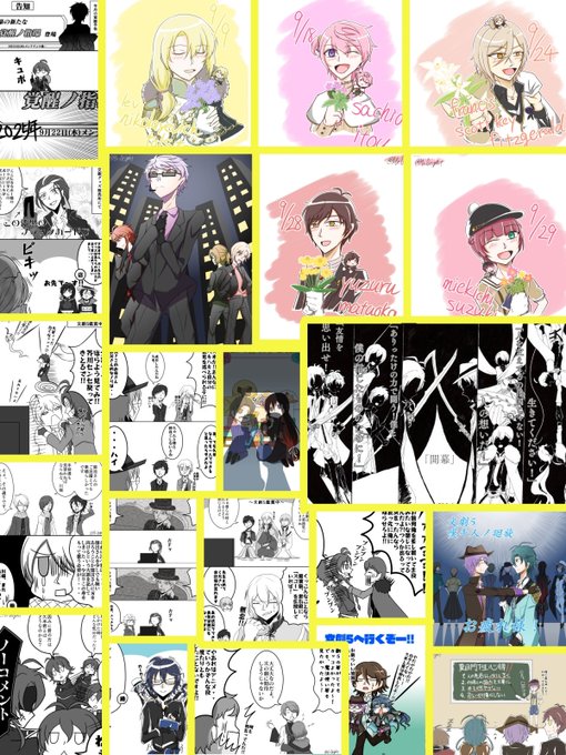 2 12 #今月描いた絵を晒そう 今月は文ゲキ関連が多いです(*´▽`) (つめつめにしてしまったので、少し見ずらくなってしまった😣💦⤵️) 22/09/30 20:46