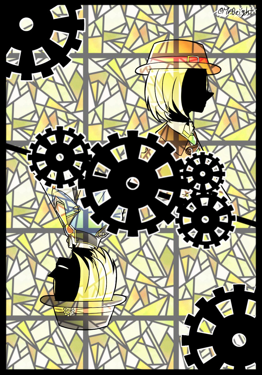 【ステンドグラス風 覚醒Ver】 久しぶり~! というわけで🥫センセから順に4人を描きました( ´∀` )