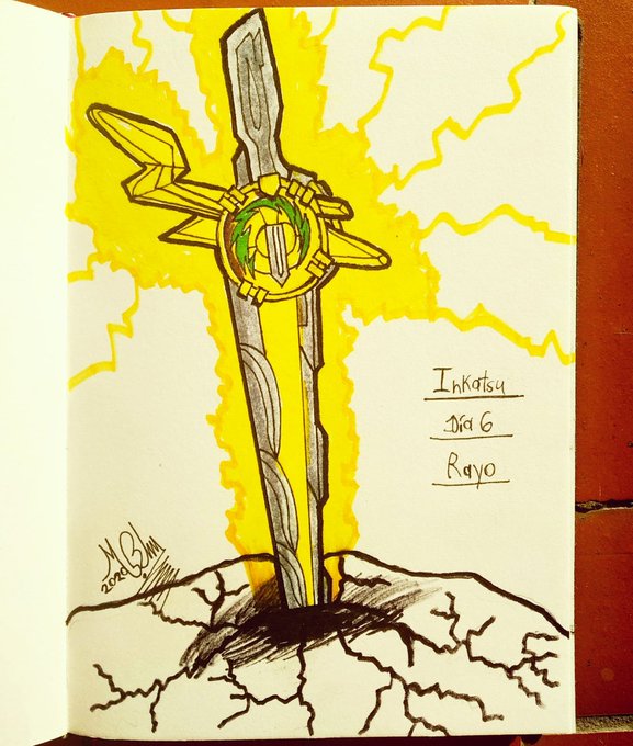 Inksatsu Día 6: Rayo La Raimeiken Ikazuchi, una espada con todo el poder de los rayos. #tradicionaldrawing #tradicionalpainting #traditionalart #drawing #painting #kamenrider #kamenridersaber #kamenriderespada #tokusatsu #reiwarider #inksatsu #inksatsu2020 #inktober