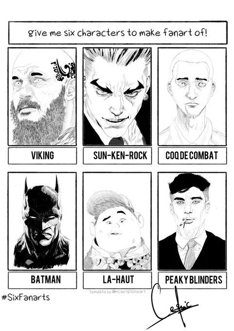 0 3 #6fanartschallenge #SixFanartsChallenge #SixFanarts ! J'ai fini la mienne. Je posterai un à un les dessins qui seront mieux représentatif. #Vikings #sunkenrock #shamo #coqdecombat #Batman #dccomics #PixarOnward #PeakyBlinders #CLIPSTUDIOPAINT 20/04/23 16:01