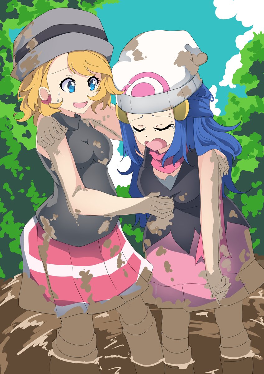 Skeb-ポケモンのセレナとヒカリが泥だらけのイラスト(+3枚 Twitterでの発信が遅れましたがリクエストありがとうございました! またのリクエストをお待ちしております skeb.jp/@Mr_arsenicum/…