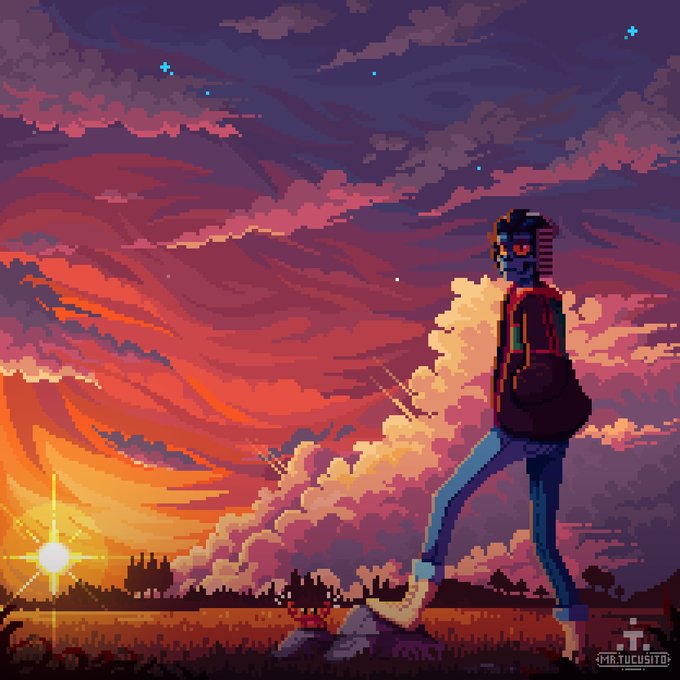 Hey, after a long disappearance of the bones, I have returned with this beautiful pixelated illustration inspired by a drawing of a great friend, who was on his birthday these days 🎊HAPPY BIRTHDAY¡¡¡🎊 @MauroStrangeArt #pixelart #illustration #ドットの日