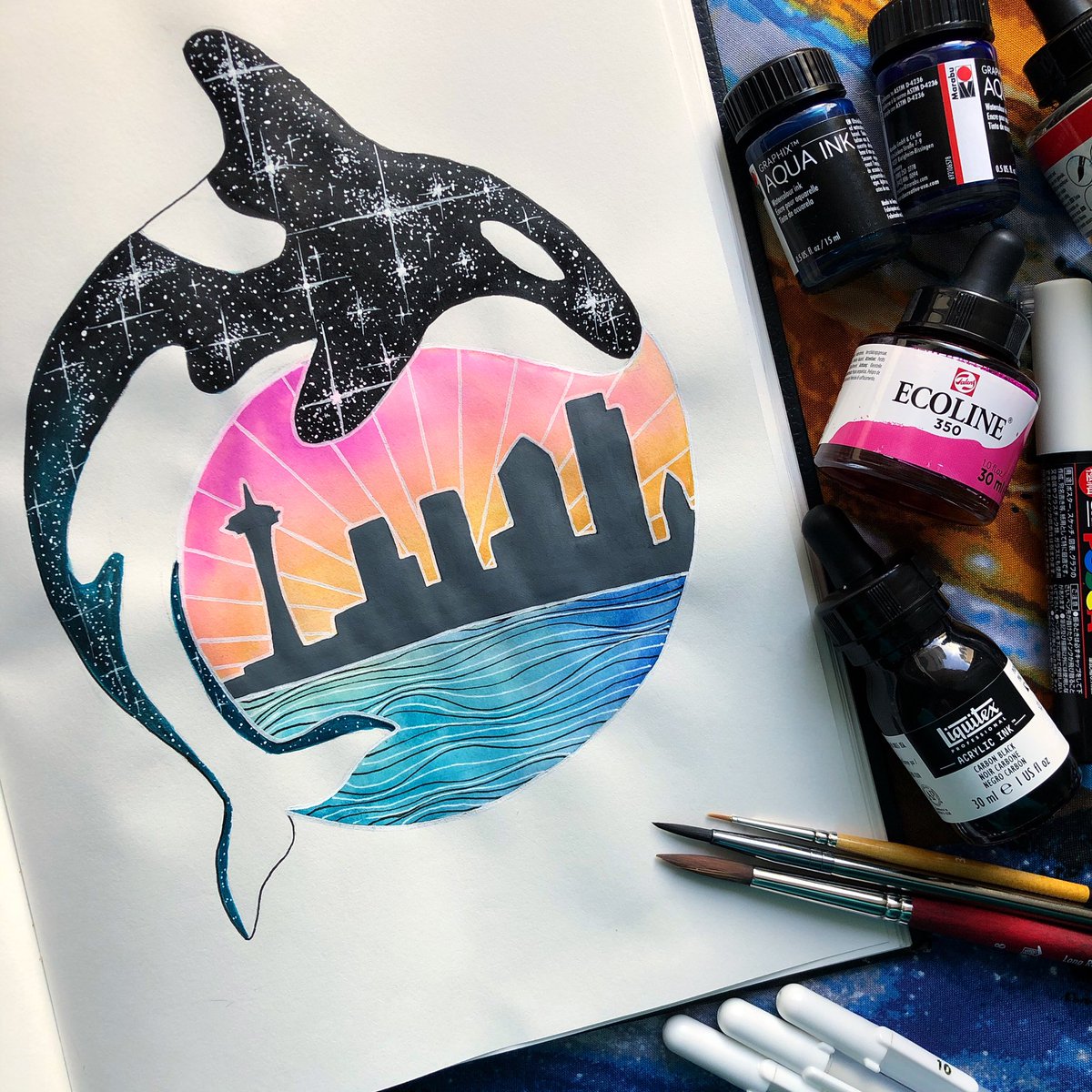 Spacetober Day 12✨ I always like incorporating the October @artsnacks box into my Inktober challenge, and this year’s box did not disappoint! How about that @theplumchester paintmarker?! #spacetober #inktober #artsnackschallenge