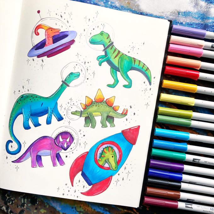 Spacetober Day 10 ✨ I can’t believe it’s only day 10! But I also can’t believe my animal series is over! I hope you enjoyed these space dinos (look out, they might end up on sticker sheet one day 👀) #inktober #spacetober #inktoberday10 @inktober @ArtSnacks @tombowusa