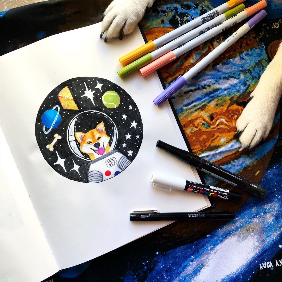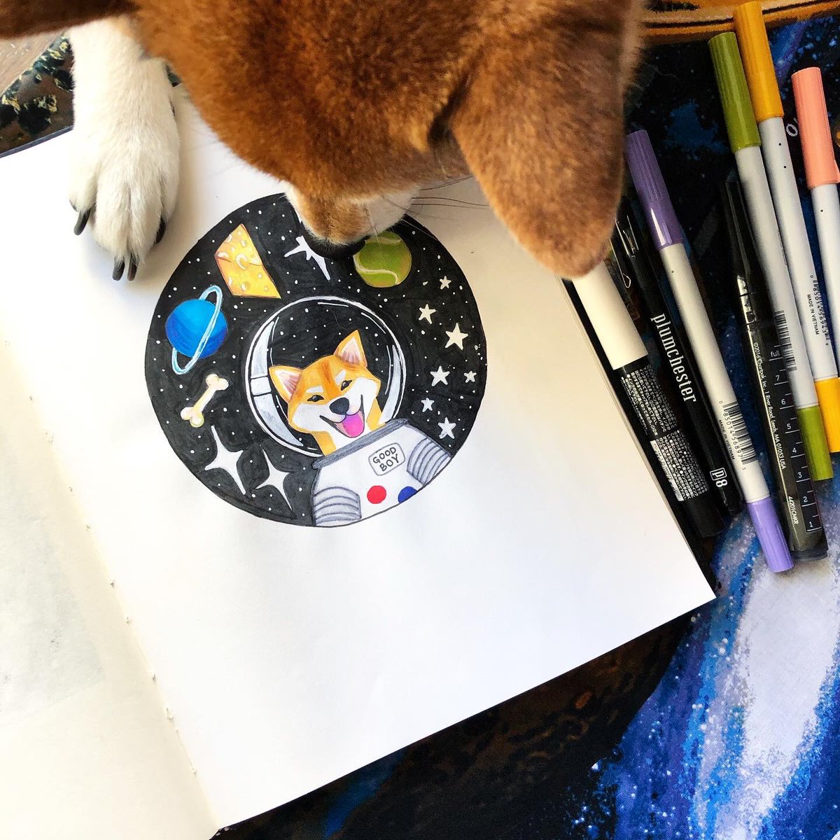 Spacetober Day 6! ✨ For days 6-10 my prompt is space animals, so of course I *had* to do a Shiba Inu. I’m still a novice with alcohol markers, but I have enjoyed learning with the @tombowusa ABT markers. 🐕 #inktober #spacetober @ArtSnacks @inktober #shibainu #Spacedogs