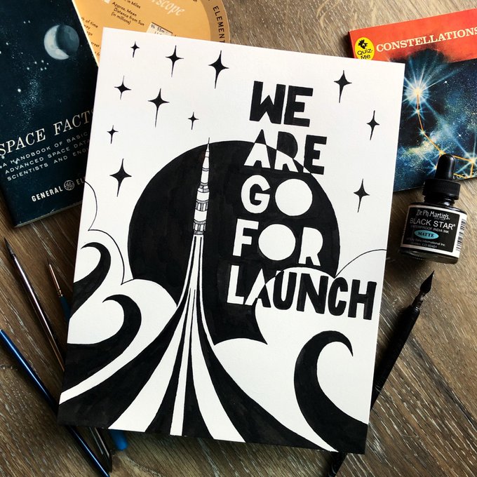 Spacetober Day 22✨ We are go for launch! One of my favorite scenes in Apollo 13 is when all the flight controllers are giving their “go” for launch. Do you have a favorite space movie? ⭐️ #spacetober #inktober #inktober2020 #inktoberday22 @nasa @inktober #nasa #saturnv