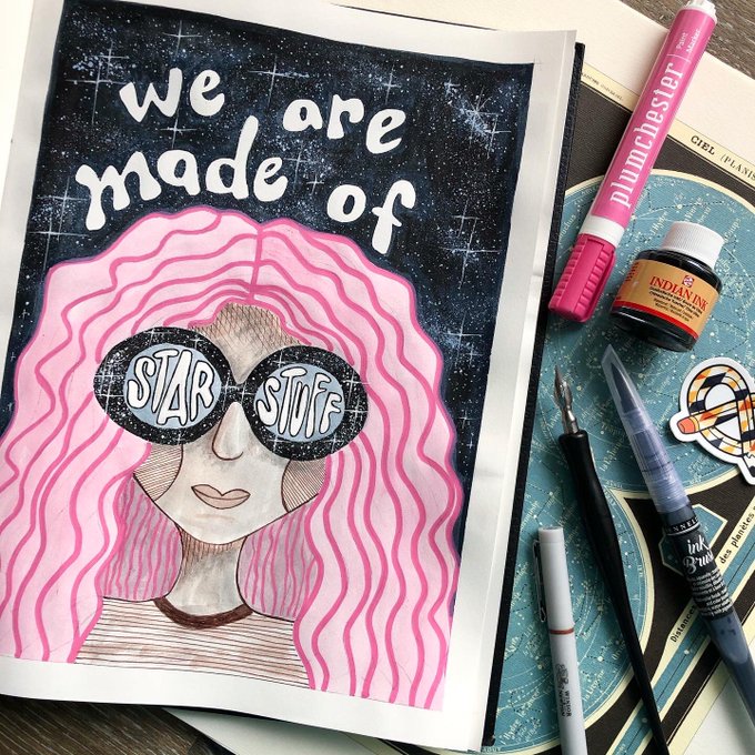 Spacetober Day 11 ✨This design took *way* too long to ink 😆 For days 11-15, I will be doing a “space quotes” series. Do you have any favorite space/star quotes? ⭐️ #spacetober #caiterbugspacetober #inktober #inktober2020 #Inktoberday11 @ArtSnacks @inktober #astronomy #space