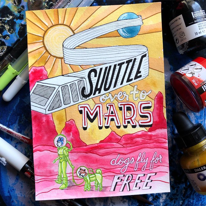Spacetober Day 20✨ How about those little doggo space boots? 😆This concludes my Locations miniseries. Tomorrow I will start on a new 5 days series of “NASA Stuff” 💫 #spacetober #inktober #mars #inktoberday20 #inktober2020coral @inktober @MarsCuriosity