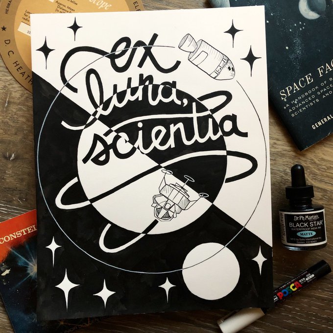 Spacetober Day 23✨Ex Luna, Scientia - From the moon, knowledge. This was Apollo 13’s mission motto. One of the many nuggets of information I learned from Jim Lovell’s book I read earlier this year. Highly recommend 💫 #spacetober #inktober #inktoberday23 @NASA @NASA_Astronauts