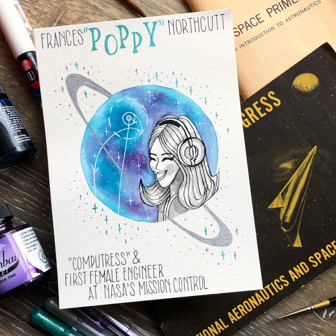 Spacetober Day 26✨My last series for Spacetober is “Women in Space” For my first day I’m highlighting Frances “Poppy” Northcutt. She was a “computress” and then promoted to technical staff making her the first female engineer at Mission Control. ⭐️ #spacetober #inktober #nasa