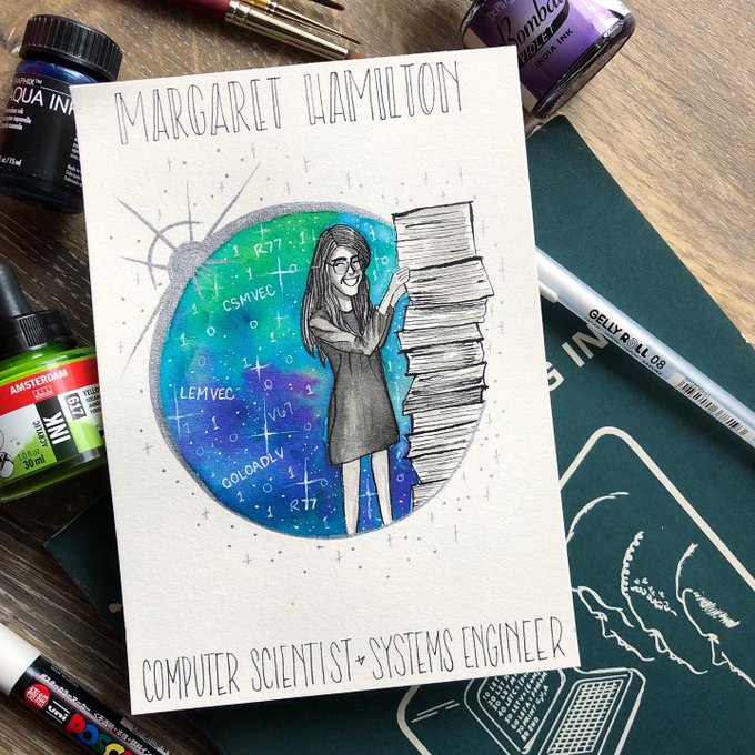 Spacetober Day 29✨Margaret Hamilton was director of the Software Engineering Division of the MIT’s Laboratory, which developed the software for NASA's Apollo program. Bonus picture: I got to see one of the AGC interface units at @LivingComputers 🤩 #inktober #nasa #spacetober