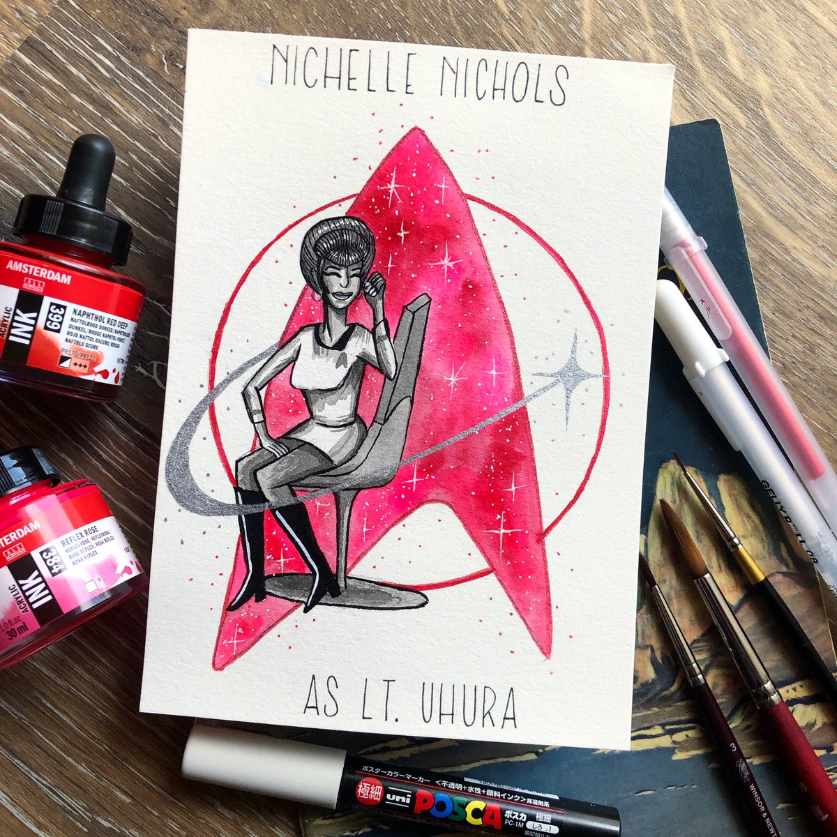 Spacetober Day 30✨ Nichelle Nichols and her portrayal of Lt. Uhura in Star Trek was an inspiration to many including Mae Jemison (the first Black woman in space). After TOS, she worked with NASA to recruit minority and female personnel. #inktober #spacetober #startrek @StarTrek