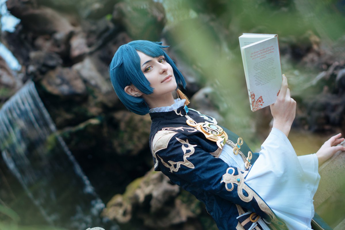 "I never embark on a journey without a good book to accompany me." ~ #Xingqiu 🌊 I absolutely LOVE the photos of my Xingqiu Cosplay💙 📸📝 @/a. va. photography /IG (she's a god, wow🥺) #GenshinImpact #GenshinImpactcosplay