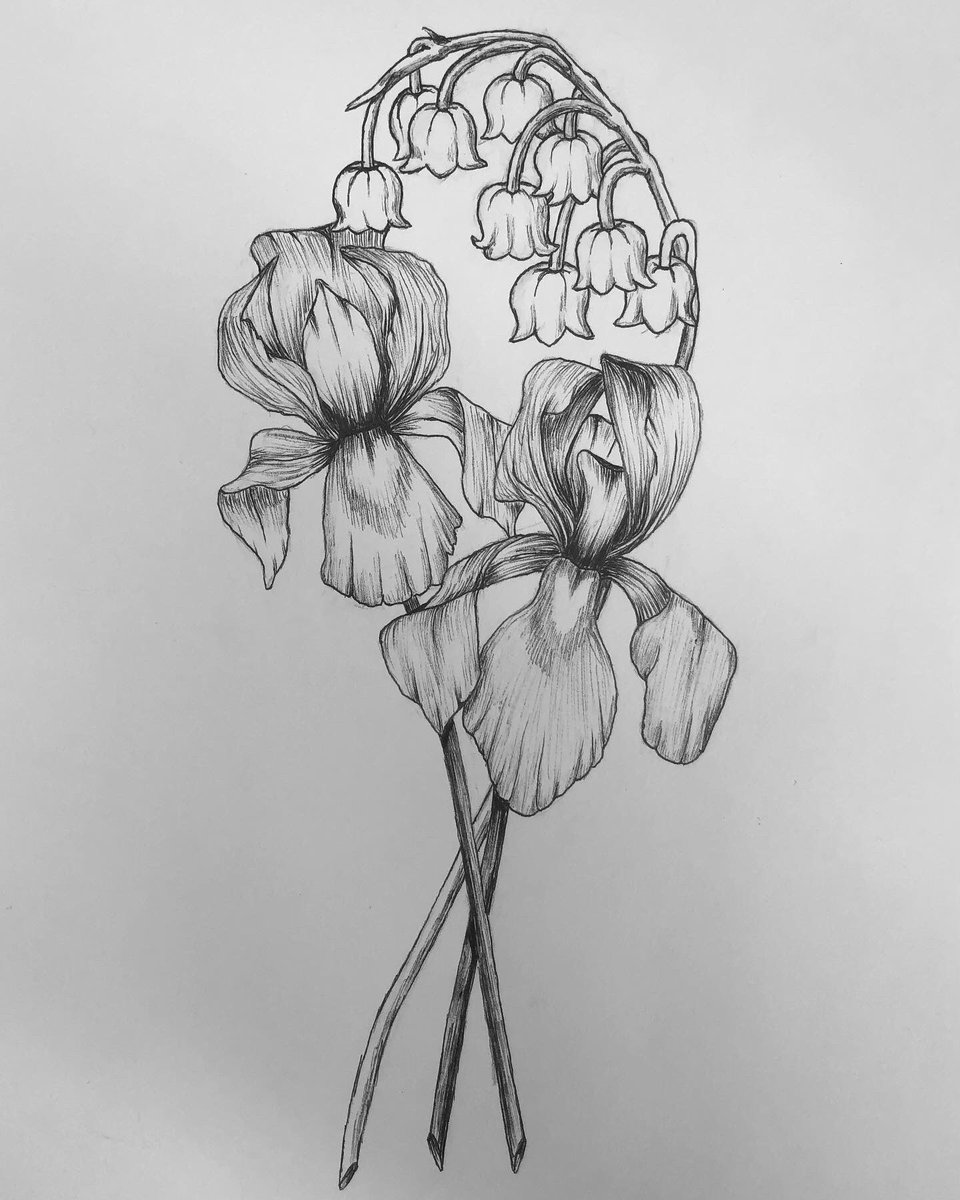 #inktober day 6: #bouquet It’s a mom bouquet with the birth month flowers for my kiddos. Irises for Frankie and Otto. Lily of the valley for Mabel. 💐 #inktober2022