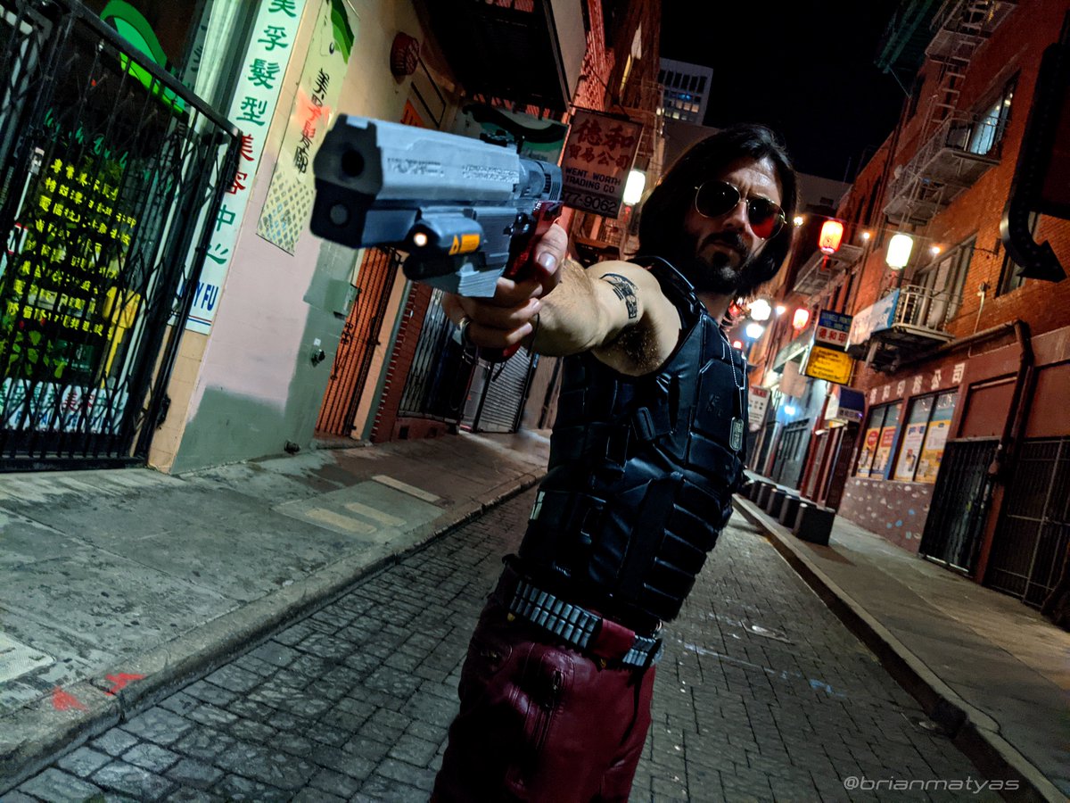 "Wake the Fuck Up Samurai, We've got a city to burn." #JohnnySilverhand = @brianmatyasart Costume made by @brianmatyasart and myself! Photos by me. Thank you @CyberpunkGame @PaweSasko @CDPROJEKTRED #cyberpunk2077 #cosplay #keanureeves