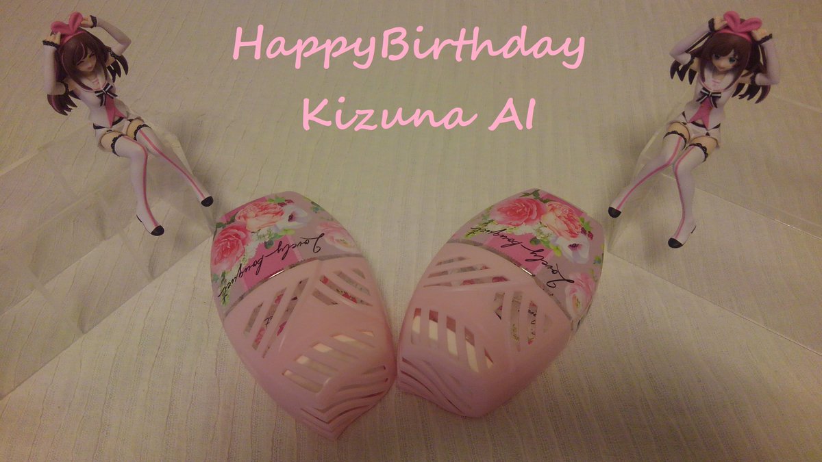 #身近なものでおめでとうアート #キズナアイが生まれた日2020 #KizunaAI アイちゃん4歳のお誕生日おめでとうございます(*>∀<*)ノ🎉🎂 目の前の芳香剤がぴょこぴょこの片側に見えてしまったので作ってみました‼