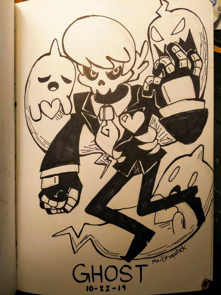 #Inktober2019 #inktoberday22 #mysteryskulls #lewis #deadbeats #mysteryskullsanimated #ghost InkTober: Day 22 - Ghost 💛 👻