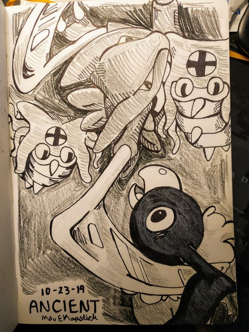 #Inktober2019 #inktoberday23 #pokemon #pmd #pokemonmysterydungeon InkTober: Day 23 - Ancient Ancient fossils attack birb 🦴🐦